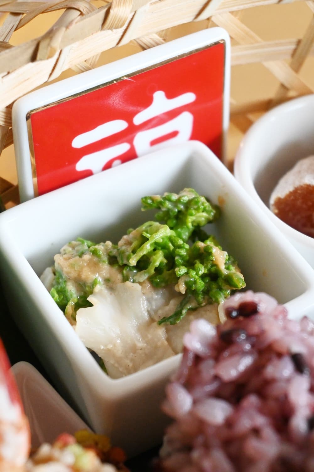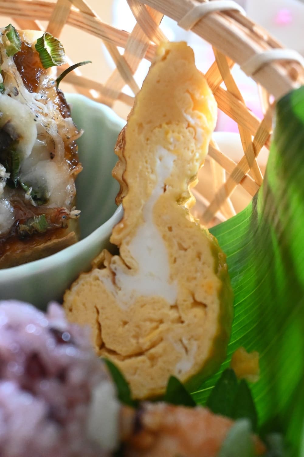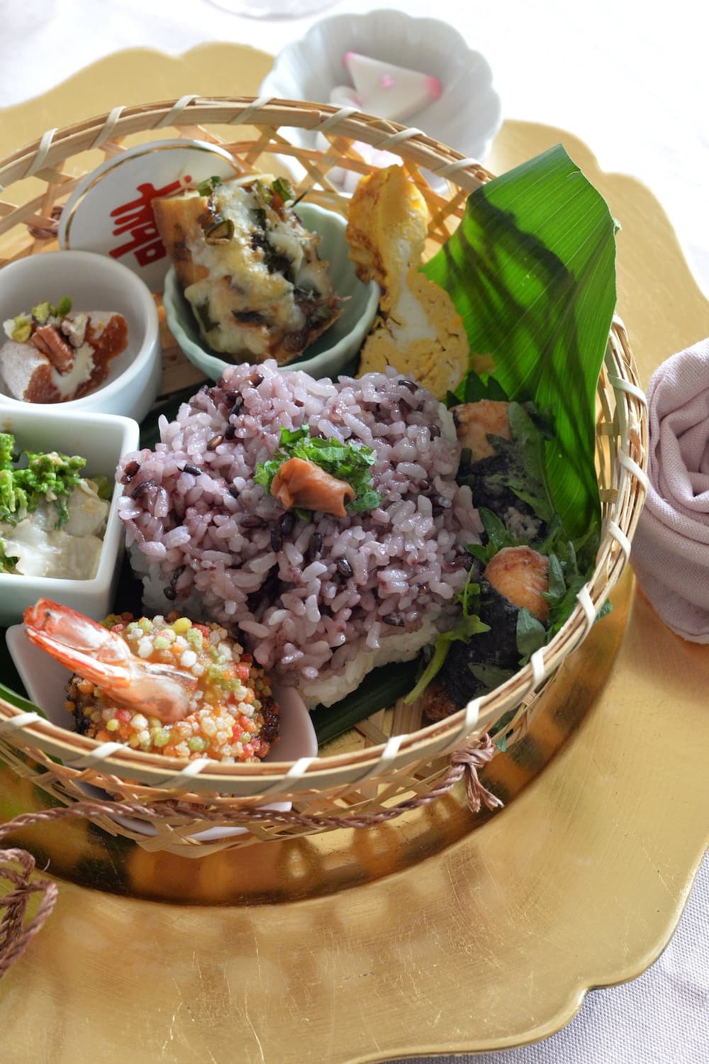 HOME | Photo Gallery | 2026年2月のレッスン 2026年2月のお料理教室 花籠弁当 干支午飾り蒲鉾 市田柿のクリームサンド 瓢出汁巻卵 菜の花の胡麻和え 海老のあられ揚げ ささみの磯辺揚げ 紅白梅酢ご飯 長ネギの白味噌出汁 抹茶ムース 日本酒 ページトップへ