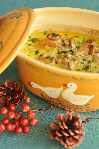 - 耐熱の器に6を移し、蓋をしてオーブンで30分温める。