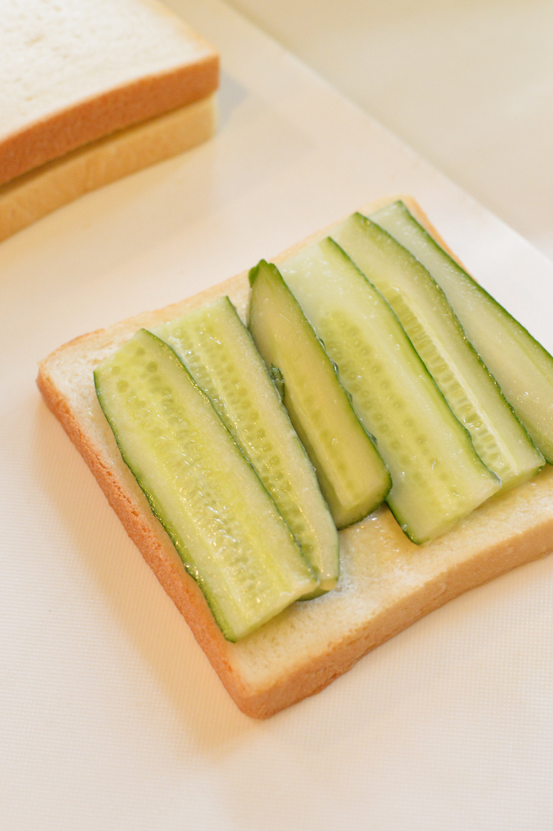 キュウリは縦に薄切りにし、軽く塩をふる。