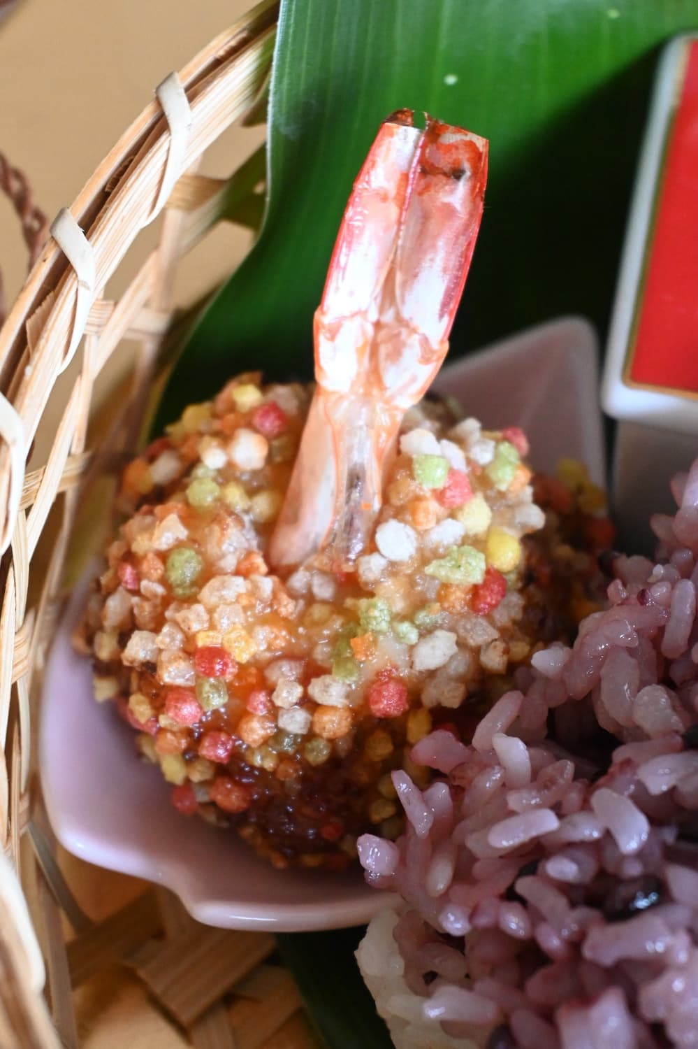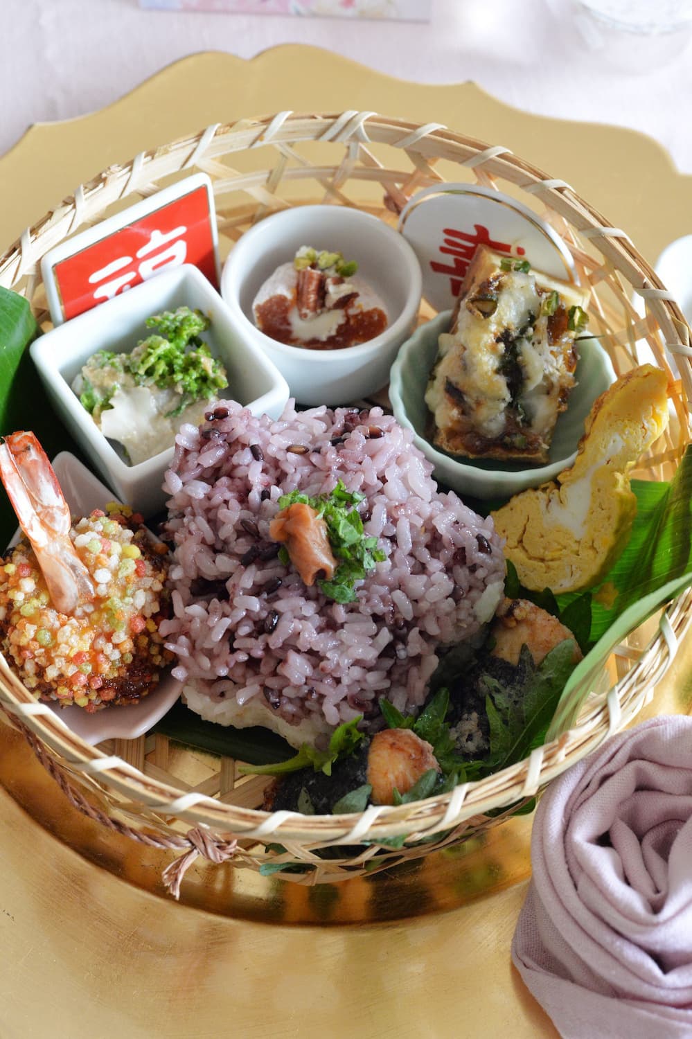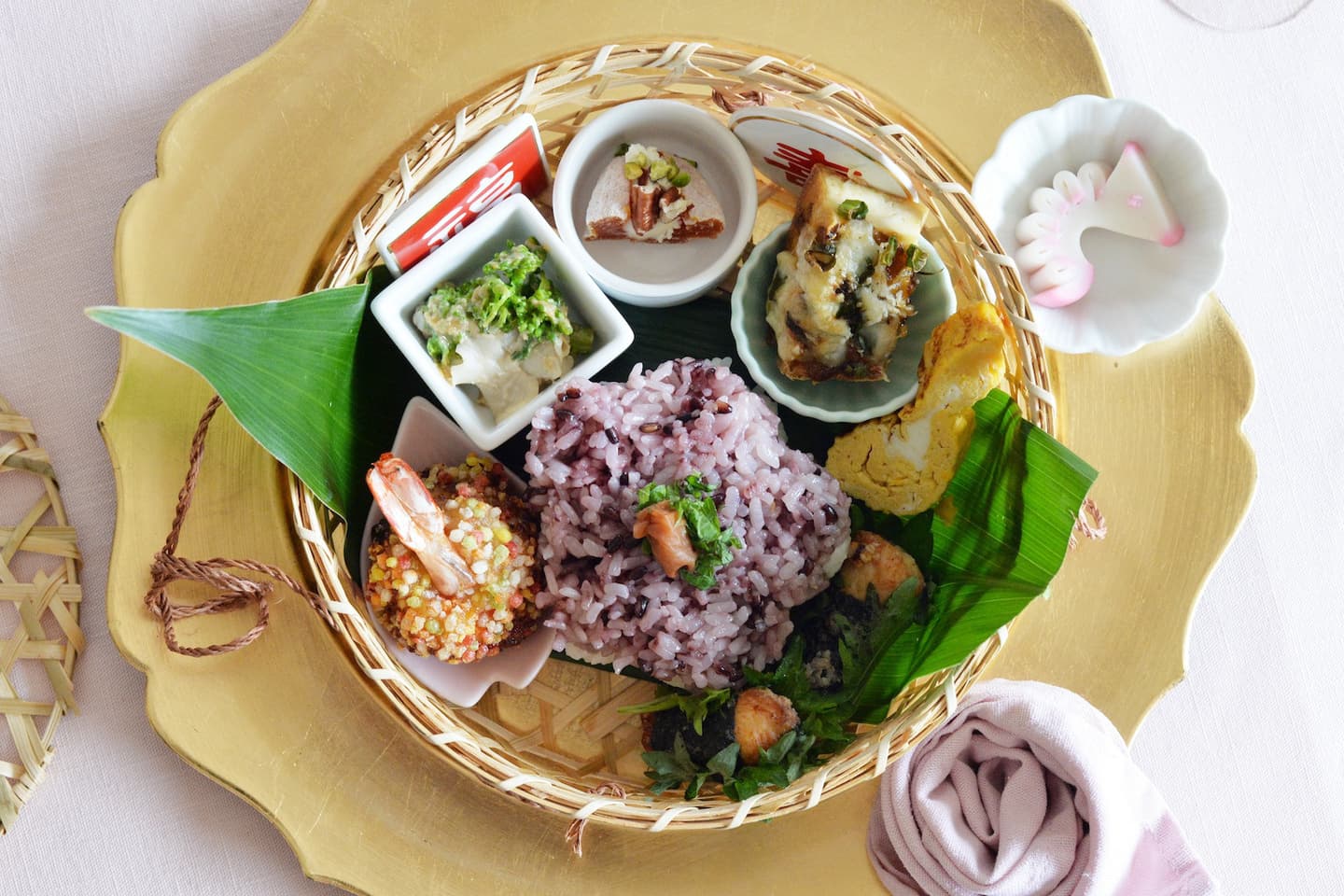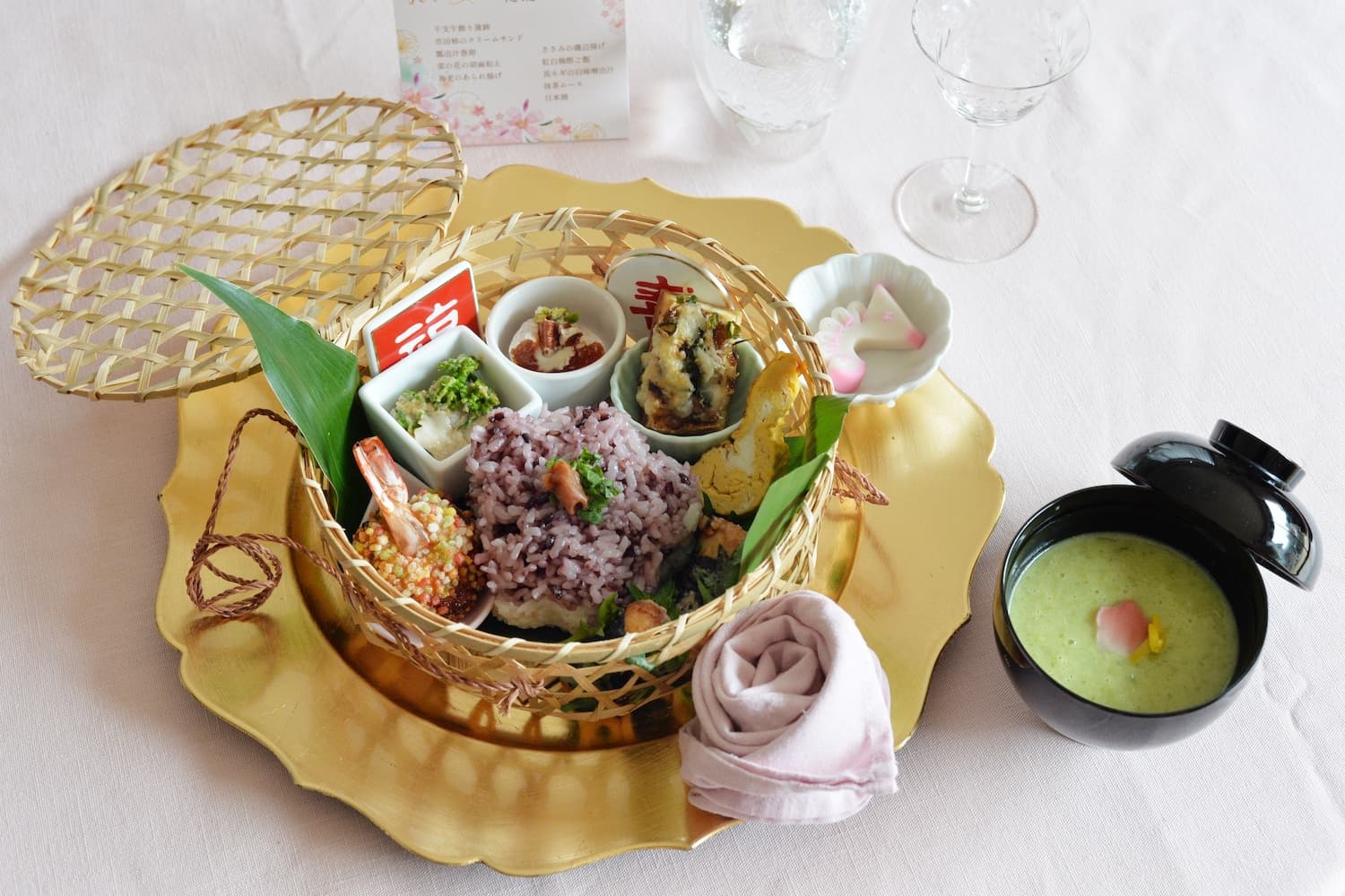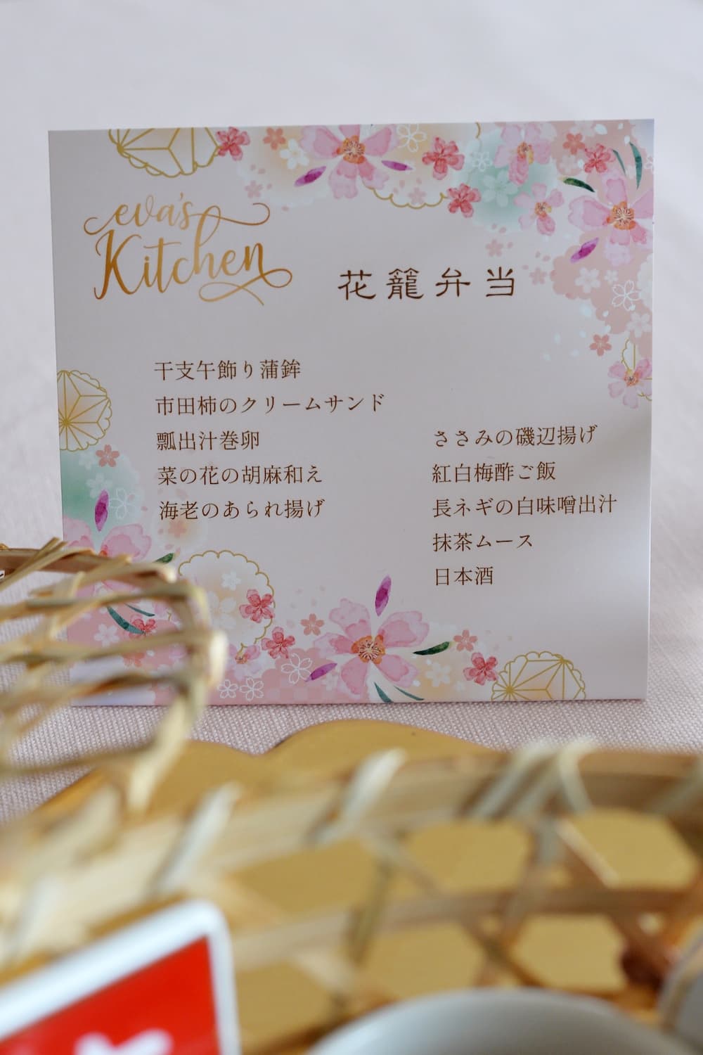 HOME | Photo Gallery | 2026年2月のレッスン 2026年2月のお料理教室 花籠弁当 干支午飾り蒲鉾 市田柿のクリームサンド 瓢出汁巻卵 菜の花の胡麻和え 海老のあられ揚げ ささみの磯辺揚げ 紅白梅酢ご飯 長ネギの白味噌出汁 抹茶ムース 日本酒 ページトップへ