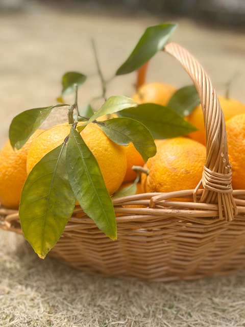 甘夏を40度程の湯に10分間つける。この間に甘夏の表面の汚れが浮き出てくる。それをブラシで洗う。その後水洗いする。