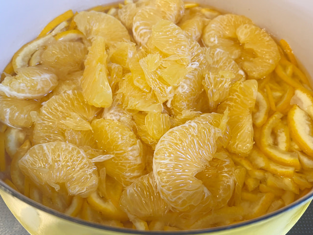 甘夏の実(袋と種は除く)を4の鍋に加える。